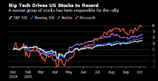 随着美国股市的创纪录上涨推高估值,围绕AI泡沫的担忧升温。科技股权重较高的纳斯达克(23043.3778, 255.02, 1.12%)100指数今年上涨1