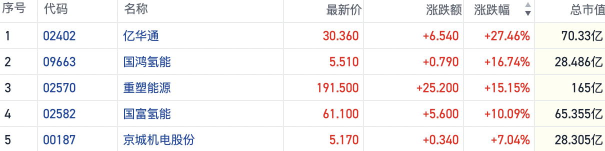 今日港股氢能概念盘中集体异动拉升。