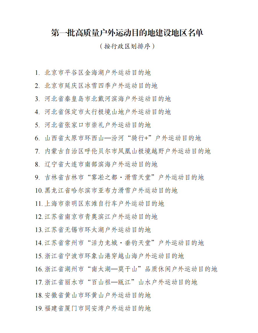 - 六部门印发第一批高质量户外运动目的地建设地区名单